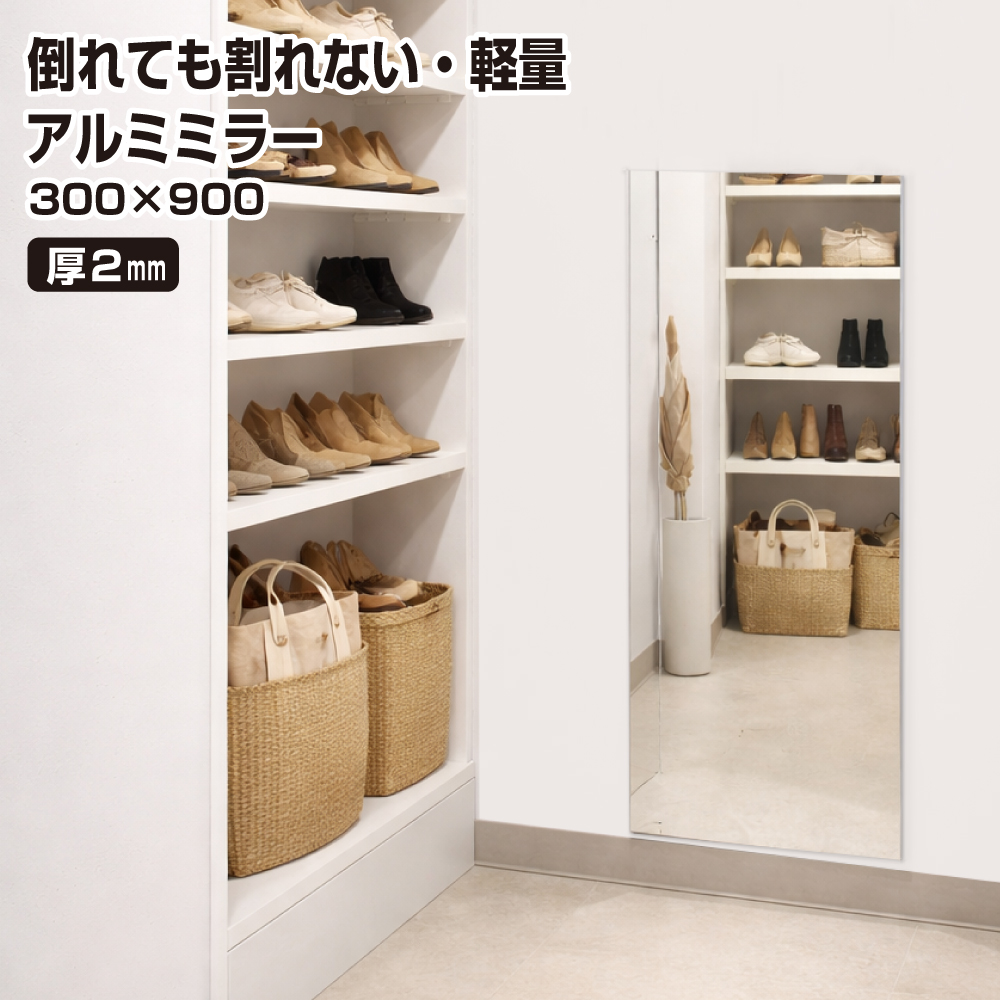 割れない鏡 姿見 鏡 おしゃれ 2mm厚 300×900mm アルミミラー 軽量 貼る鏡 ノンフレーム 枠なし シンプル 省スペース ウォールミラーフレームレス 爆買 yh1530