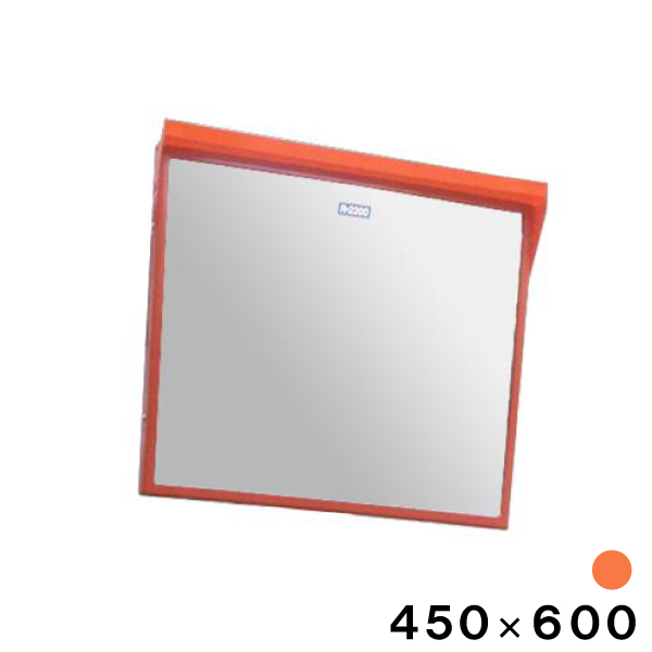 カーブミラー 安全ミラー 角型 450×600mm 一面鏡 ポール用取付金具付 フード付き オレンジ アクリル製 大型ミラー 道路反射鏡 駐車場ミラー 屋外 日本製 yh188