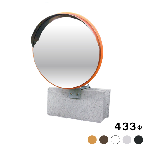 ガレージミラー ステンレスミラー 丸型 433φ ブロック クランプ 挟み込み 金具付 オレンジ 白 茶色 グレー 黒 日本製 yh485
