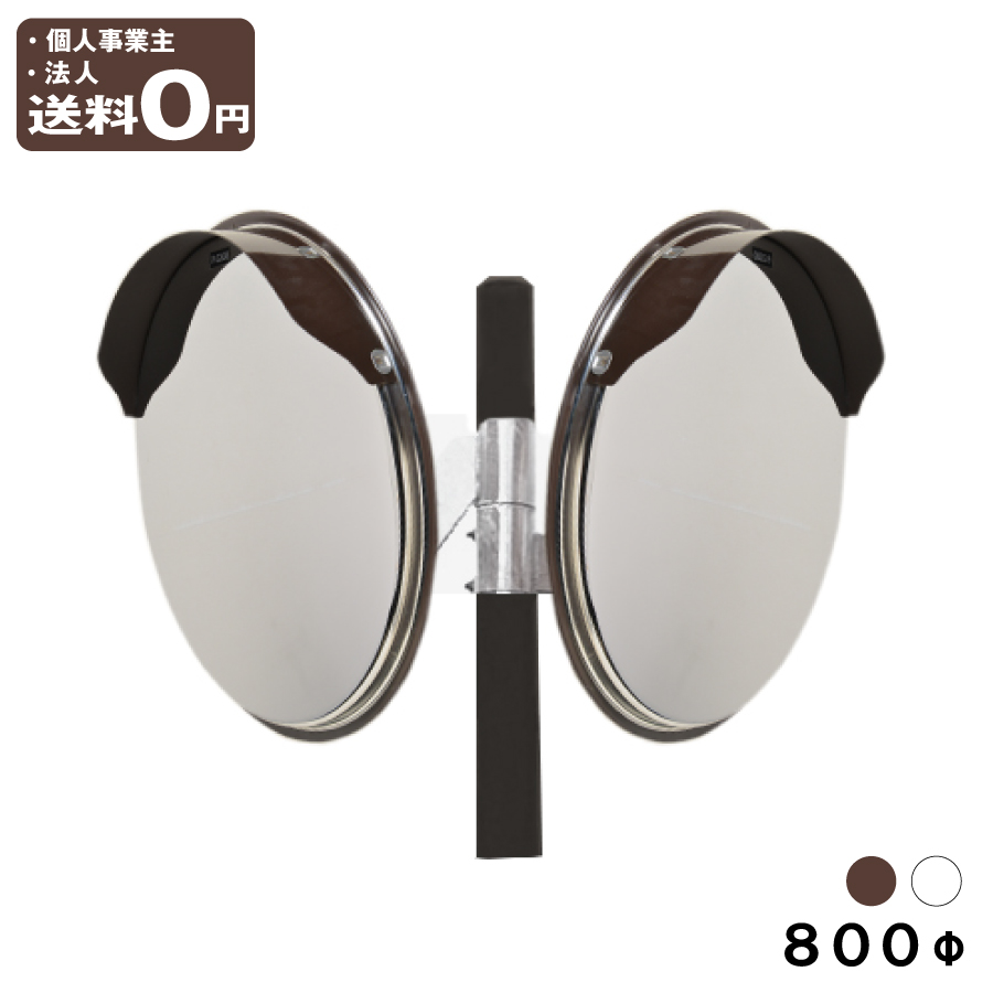 カーブミラー 丸型 800φ ステンレス製ミラー 大型 2面鏡 ポール付き 89.1φ×4400mm 取付金具付 安全ミラー 道路反射鏡 茶 白 支柱セット 日本製 yh627-wpbrw