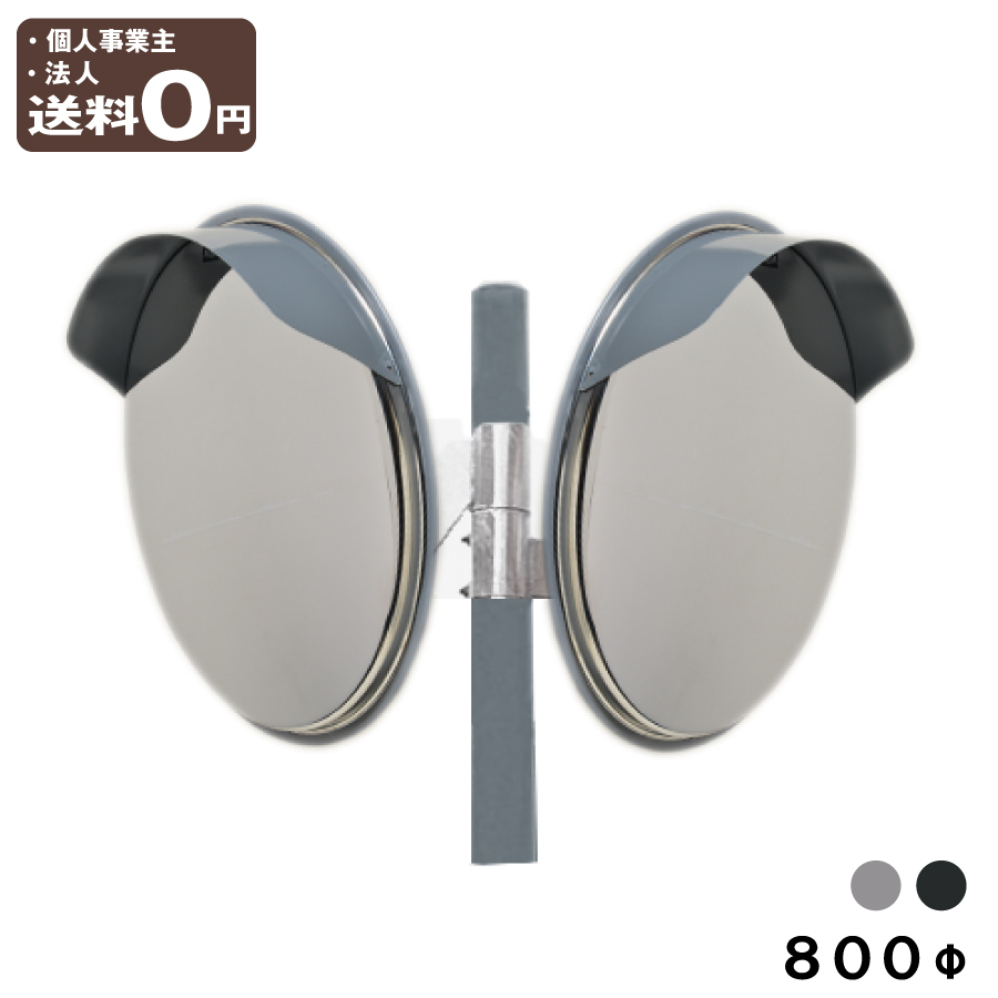 カーブミラー 丸型 800φ ステンレス製ミラー 大型 2面鏡 ポール付き 89.1φ×4400mm 安全ミラー 道路反射鏡 グレー 黒 支柱セット 出入口 日本製 yh627-wpglbk