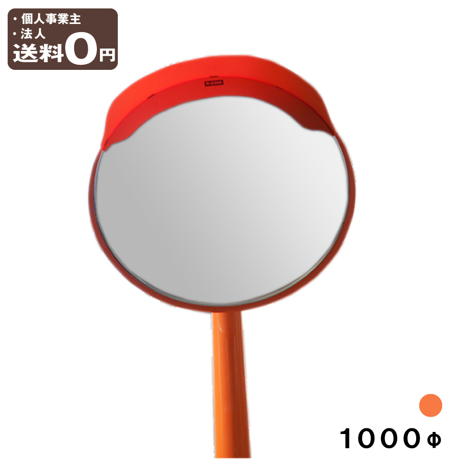 カーブミラー 安全ミラー ポール付 丸型 1000φ 取り付け金具付 直柱 89.1φ×4400mm オレンジ ステンレス製ミラー 大型 道路鏡 屋外 交差点 日本製 yh628-sp