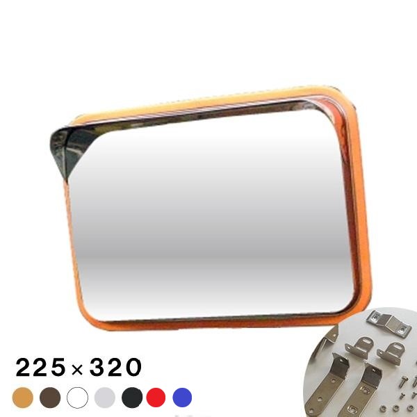 ガレージミラー 中型 角型225×320mm ポール用取付 ステンレス製金具付 オレンジ 白 黒 グレー 茶 赤 青 yh679