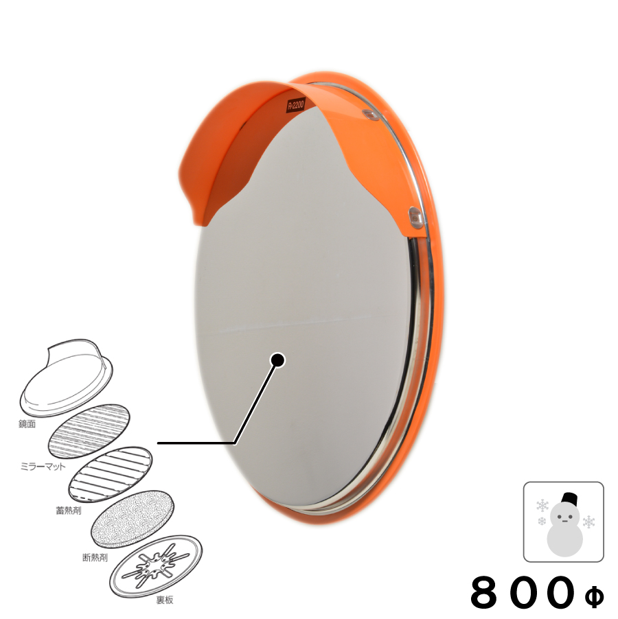 カーブミラー 丸型 800φ くもり防止 蓄熱材入り 安全ミラー ポール用取付金具付 オレンジ ステンレス製 一面鏡 大型ミラー 道路反射鏡 日本製 yh729