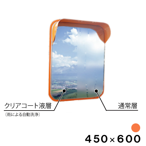 カーブミラー 角型 450×600mm 安全ミラー クリアコートミラー 超親水性 ステンレス製 道路鏡 ポール用取付金具付き 一面鏡 オレンジ 駐車場 車庫 日本製 yh743