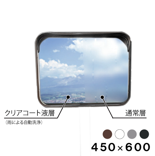カーブミラー 角型 450×600mm 安全ミラー クリアコートミラー 超親水性 ステンレス製 道路鏡 ポール用取付金具付き 一面鏡 茶 白 グレー 黒 車庫 日本製 yh744