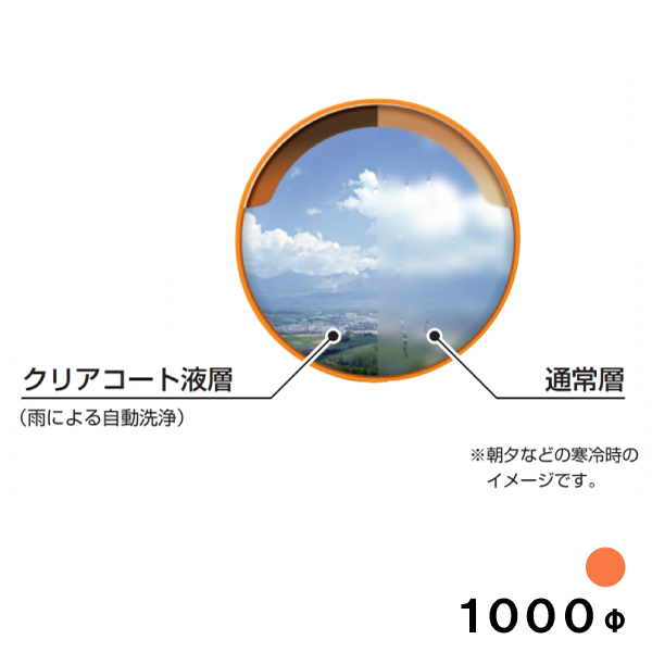 カーブミラー クリアコートミラー 超親水性 安全ミラー 丸型 1000φ アクリル製 一面鏡 取付金具付 フード付き オレンジ 大型ミラー 交差点 駐車場 日本製 yh751