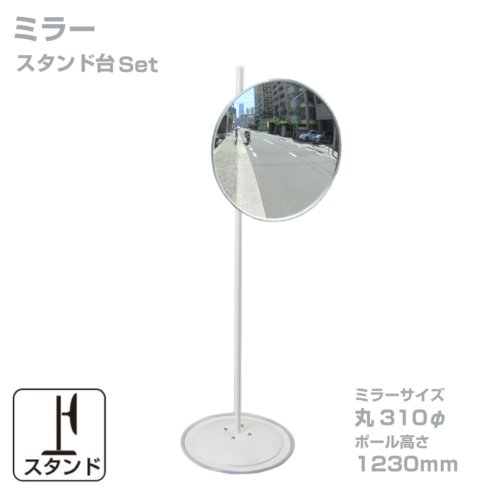ガレージミラー カーブミラー 家庭用 小型 グレー 丸型 310φ スタンド台セット 高1230mm 取付金具付 約30cm ガラス製 ミラー 日本製 yh824