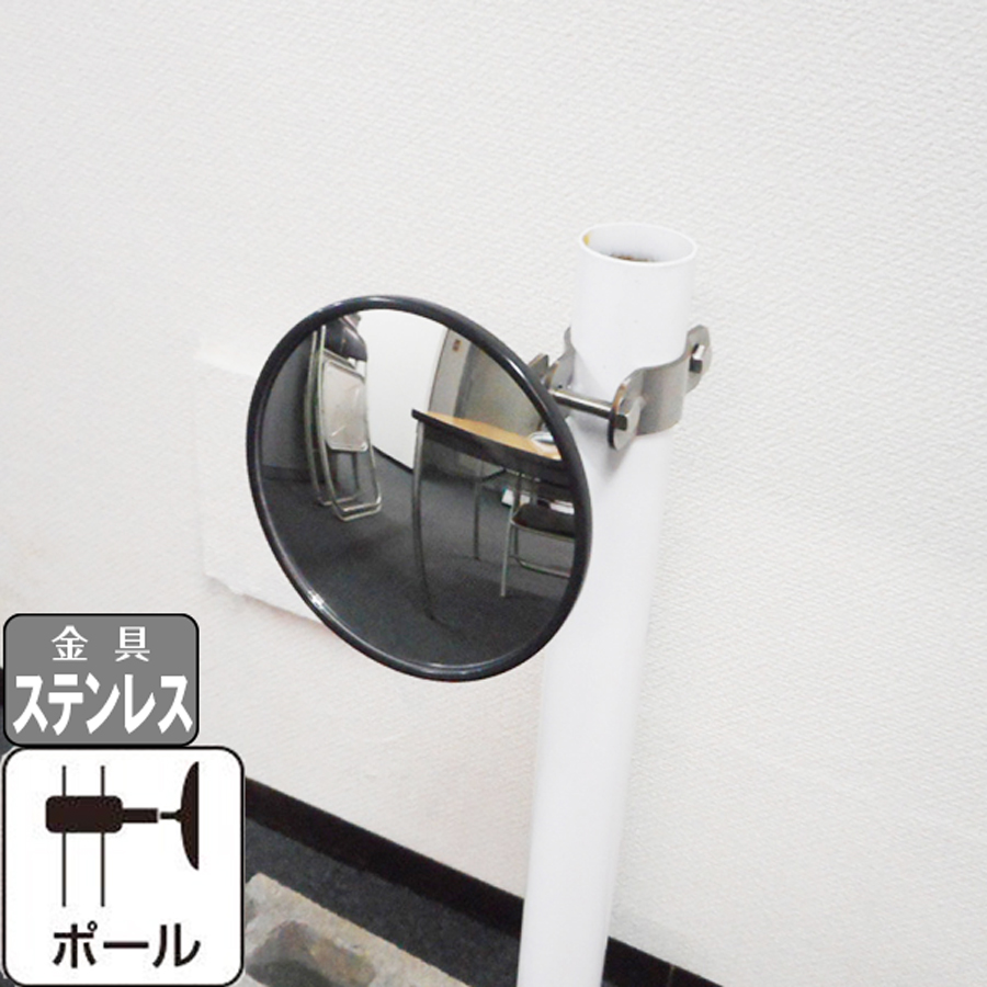 ガレージミラー カーブミラー 黒 白 丸型 147φ ステンレス製取付金具 ポール(25〜60mm)用 日本製 yh935
