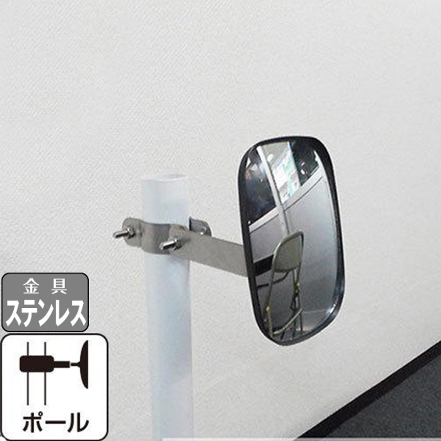 ガレージミラー カーブミラー 家庭用 黒 白 角型 150×180mm ステンレス製 取付金具付 ポール25〜60mm用 小型 ガラス製ミラー 日本製 yh939