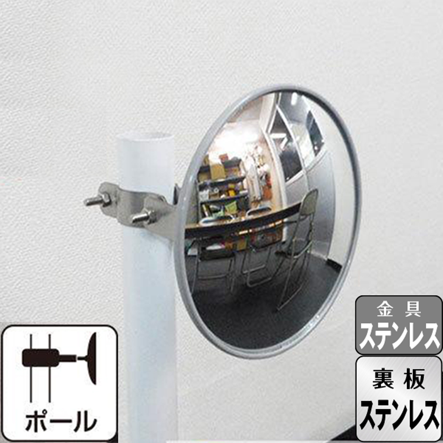 ガレージミラー カーブミラー グレー 丸型 210φ ステンレス製取付金具付 ポール25〜60mm用 日本製 yh943
