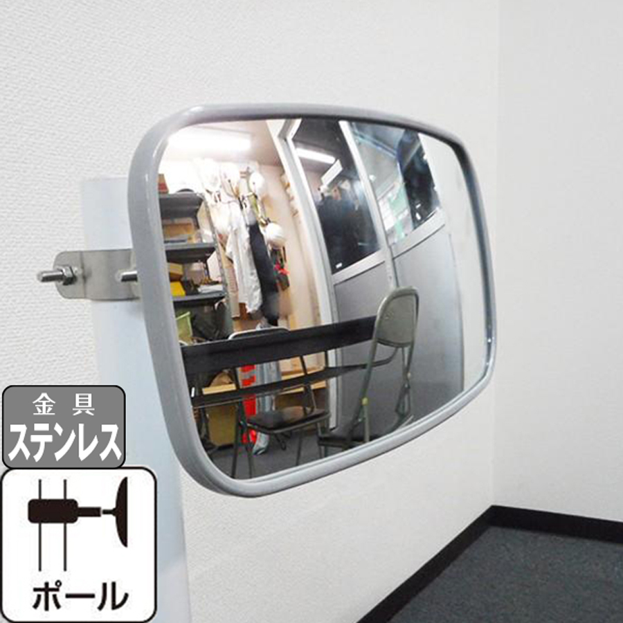 ガレージミラー カーブミラー 家庭用 グレー 角型 320×175mm ポール取付 ステンレス製 取付金具付 日本製 yh951