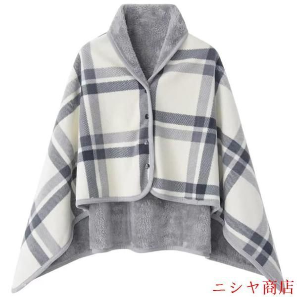 ひざ掛け ブランケット 大判 100×140CM 4way 着る毛布 ボタン付き 改良 防寒 寒さ対策 あったか チェック柄 洗濯可 キャンプ オフィス