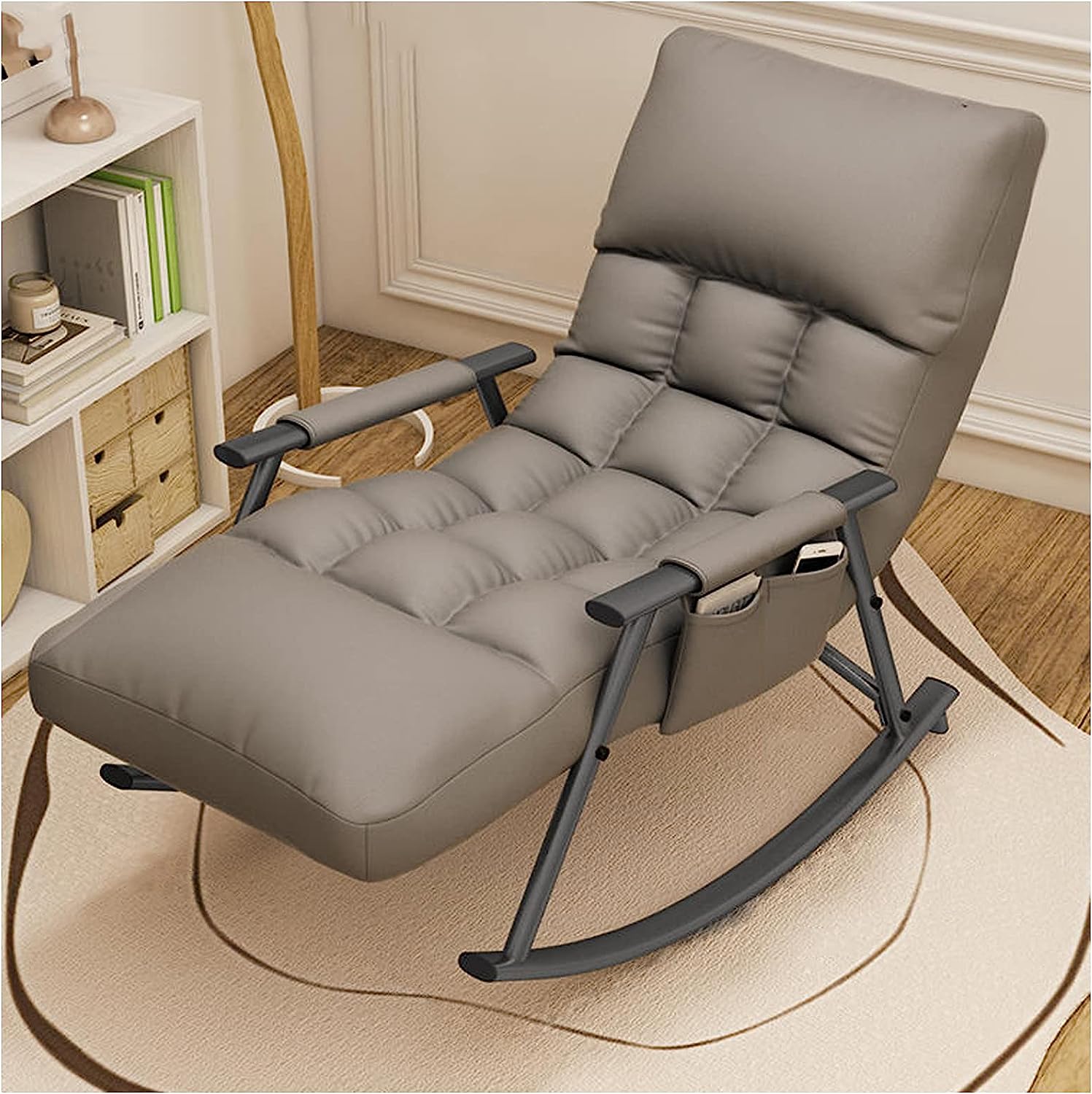 品質の選択:ロッキングチェアは、新しいテクニカルファブリック、繊細で柔らかい手触り、座りがちで蒸し暑くない;高密度スポンジ+高品質のダウンコットン,人間工学に基づいたデザイン、完全にフィットして保護。アームレストに収納ポケットがあるので、本や携帯も楽に収納できます。取り外して洗えるジッパー式で、お手入れも簡単です。