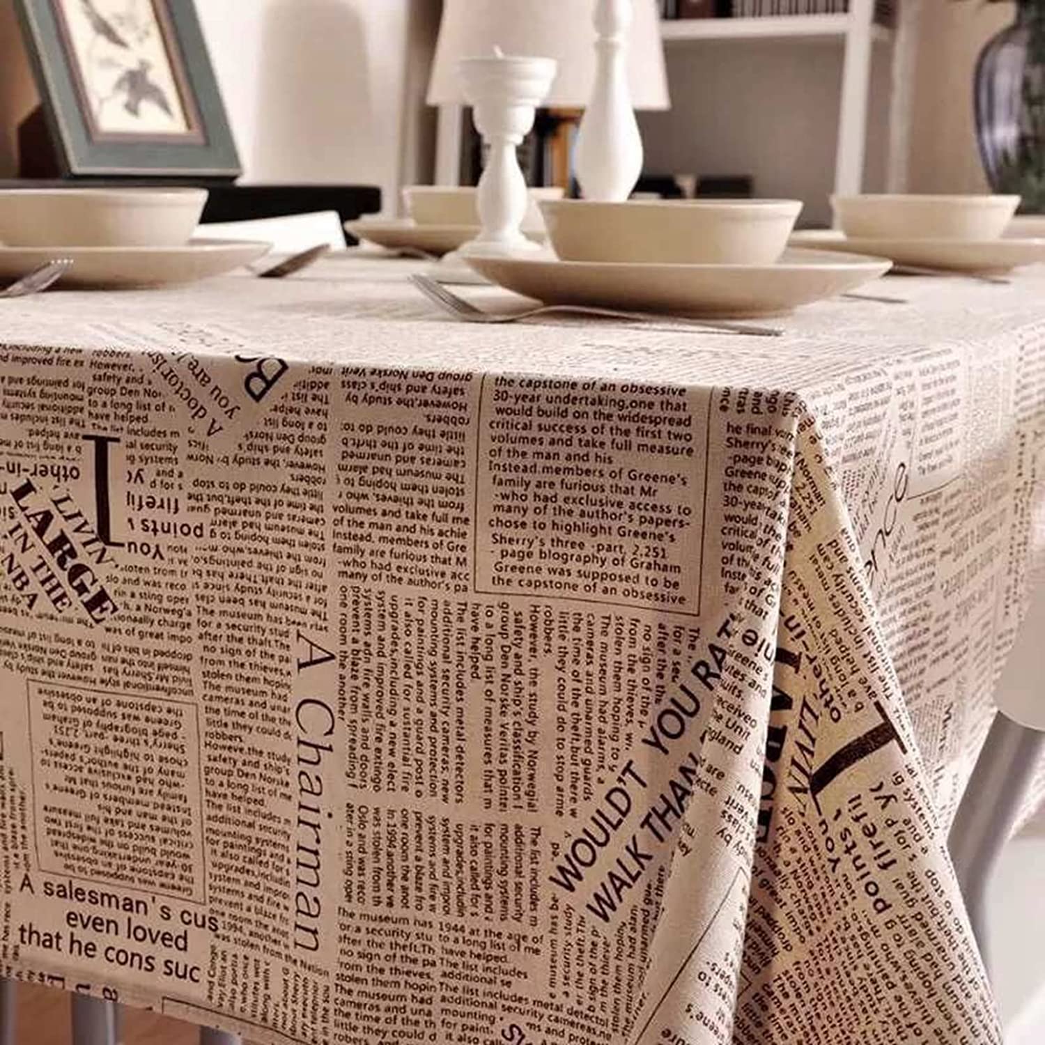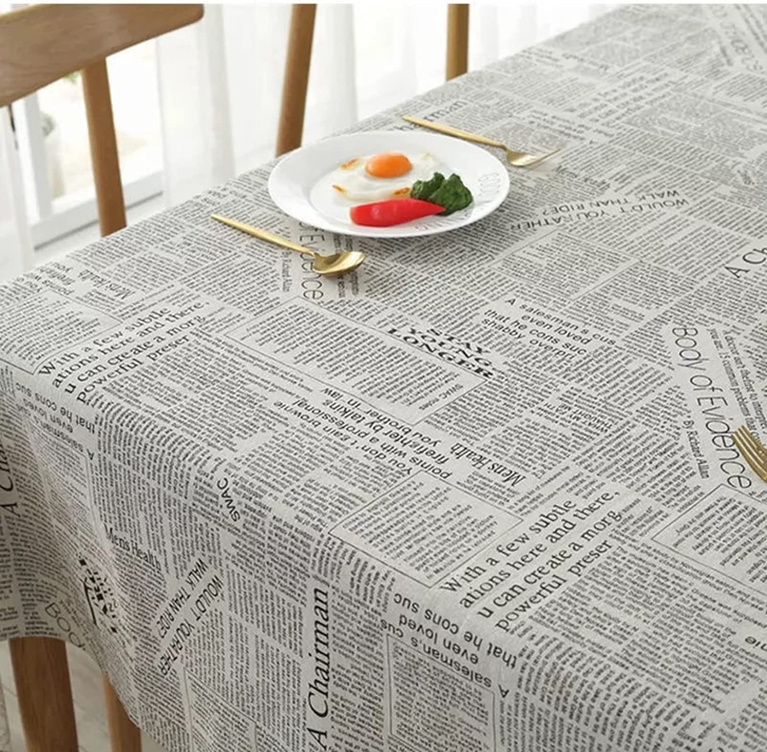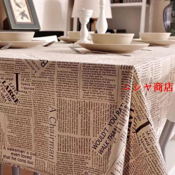テーブルクロス 英字 新聞柄 綿麻 洗える 北欧風 個性的 食卓カバー 長方形 厚手 耐熱 防汚 軽量 テーブルマット デスクマット インテリア 装飾