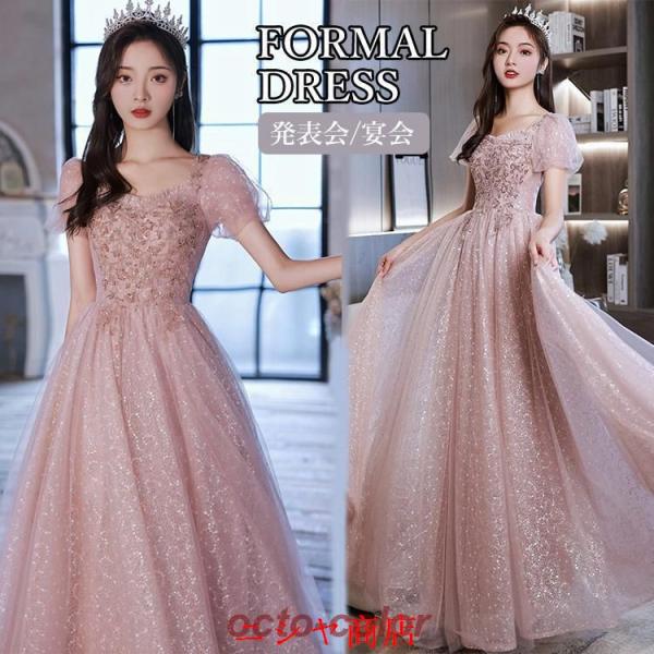 ピアノ発表会 ドレス 大人 半袖 マキシ丈 無地 刺? ワンピース レディース 女の子 中学生 高校生 ピアノ ウェディング レース ピンク ハイネックドレス ビーズ