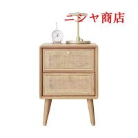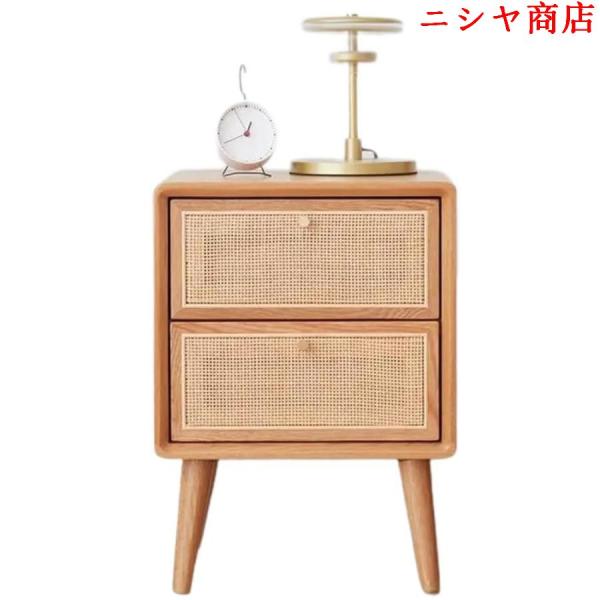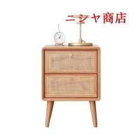 全無垢材ベッドサイドテーブル ナイトテーブル サイドテーブル ラタン純無垢材北欧モダンミニマリスト収納棚スモールオフィス寝室 引き出し付きオーク材 ナチュ