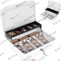 カンチレバーマネートレイ: キャッシュボックスが開くと、コイン用の5つのコンパートメントカンチレバートレイが自動的に開きます。金庫 家庭用の下には、追加の紙幣、メモ、領収書などを入れるための小さなコンパートメントがあります。