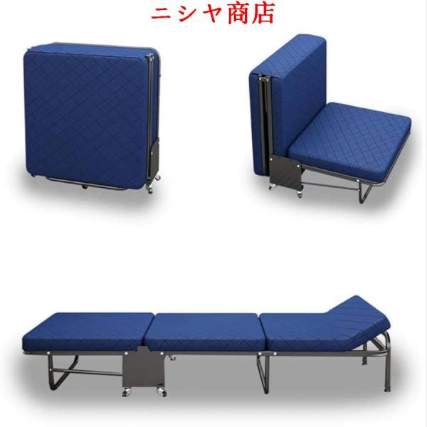 折りたたみベッド コンパクト 5段階リクライニング シングルベッド幅70 高反発マットレス 三つ折り 簡易ベッド静音キャスター付き 仮眠用ベッド軽量 移動便利 耐