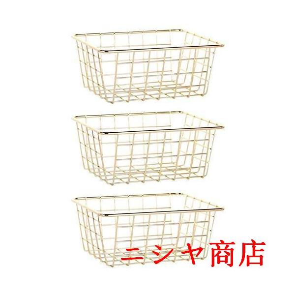 カゴ ゴールド 3個セット ワイヤーバスケット メタルバスケット 頑丈 耐用性 真鍮 エレガント 見せる収納 インテリア 高級 アパレル ショップ 雑貨屋 備品 にも