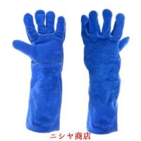 セーフティ グローブ 保護 手袋 耐磨耗 耐熱 牛革 動物取扱 保護手袋 犬 猫 爬虫類 ペット 噛みつき耐摩耗性に優れる 46cm ブルー