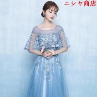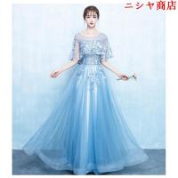 演奏会用ロングドレス パーティードレス 可愛い 大きいサイズ ウエディングドレス 二次会 花嫁 20代 30代 40代 撮影用 発表会 姫系 カラードレス ブルー