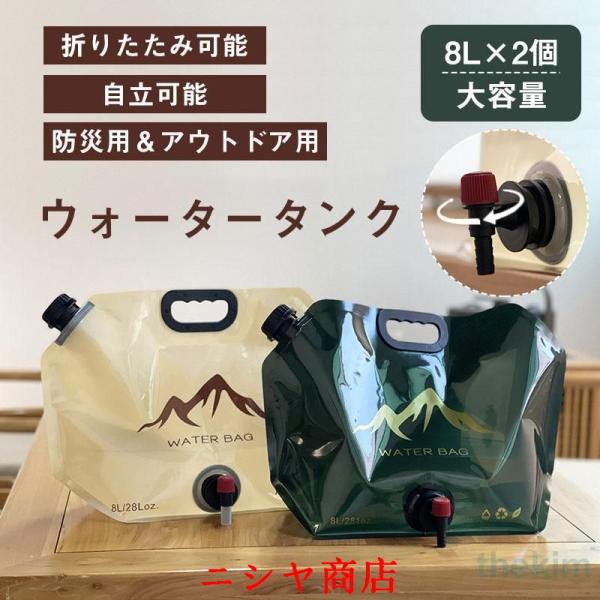 ウォータータンク 8L 2個セット 折りたたみ レバー式コック付 自立可能 防災グッズ 非常用 緊急用 アウトドア用品 断水対策 コンパクト 収納便利