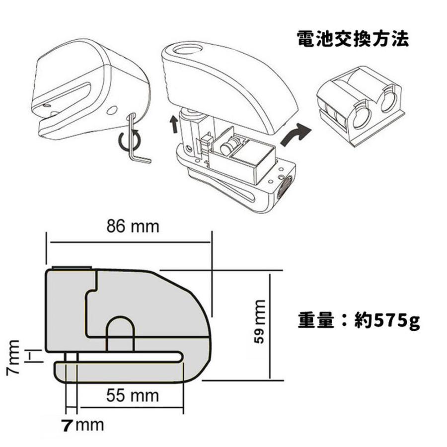 商品内容:ロック本体、専用バック、鍵×1、ボタン電池、ワイヤー