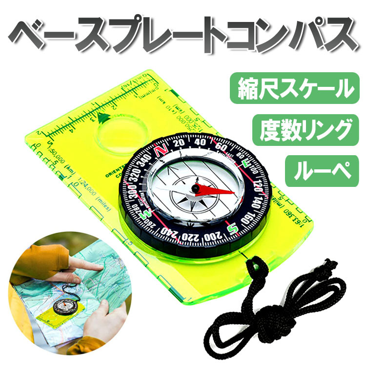 縮尺目盛付きコンパス ベースプレートコンパス 方位磁石 登山 地図計測 オリエンテーリング ハイキング ルーペ 定規 多機能 マップ用コンパス 小型 HOP-CPDC361