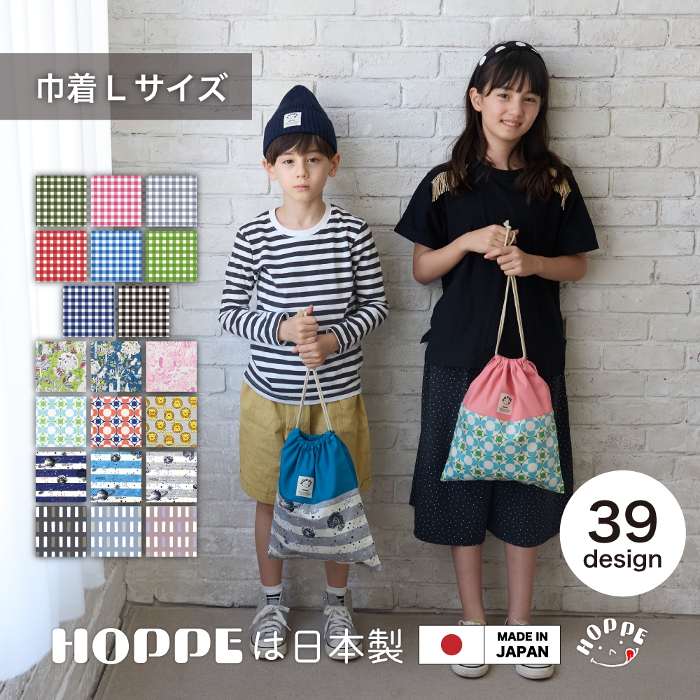 巾着 L HOPPE ホッペ 日本製 手作り 入園入学準備 入園入学グッズ 通園通学 保育園 幼稚園 小学校 体操服入れ お着替え袋 上履き入れ 巾着大 巾着袋 おしゃれ