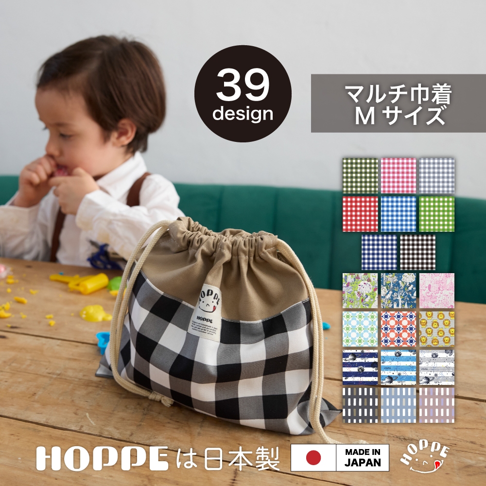 【マルチ巾着 ミディアム】HOPPEのオリジナル生地!定番のチェック柄がシンプルで可愛い♪