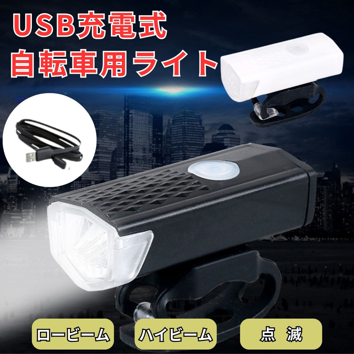自転車ライト USB 充電 自転車 ライト 給電 LED 後付け 防水 明るい ヘッドライト 回転 軽量 コンパクト 通学