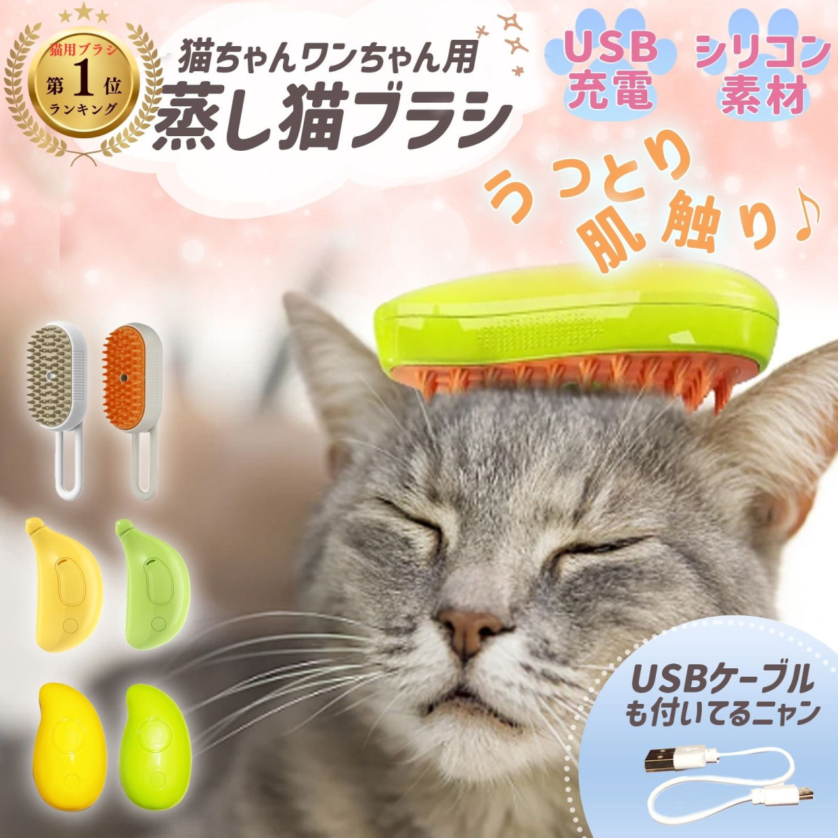 蒸し猫ブラシ 蒸し 猫 ブラシ 長毛 中毛 短毛 スチーム ペット 猫 犬 蒸気 充電器 USB スチーム