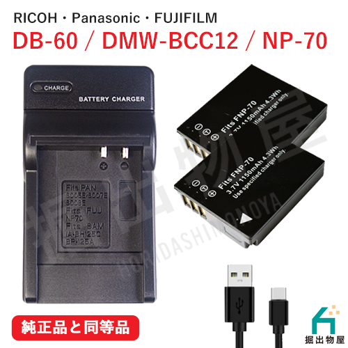 フジフィルム(FUJIFILM) NP-70 / リコー (RICOH) DB-60 DB-65 互換 バッテリー 2個 + USB 充電器 セット コード 01729x2-01750