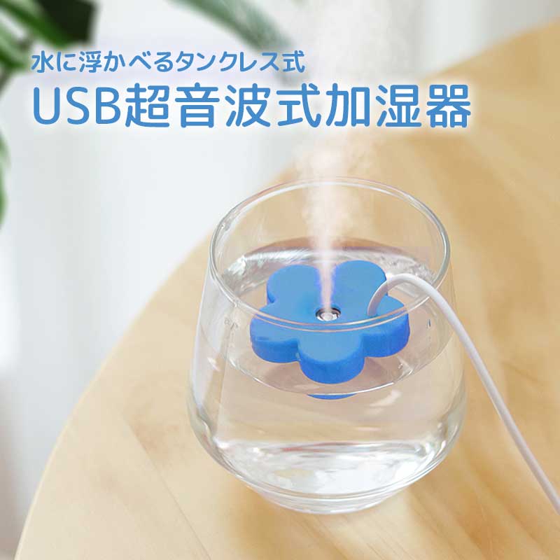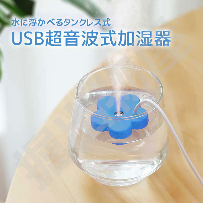 TETOMI 水に浮かべる加湿器 花形 usb コンパクト タンクレス 超音波式 静音 乾燥 花粉症対策 オフィス 寝室 卓上加湿器 旅行 小型