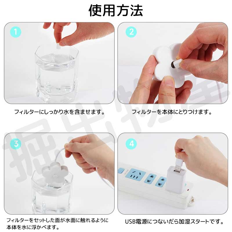 水に浮かべるだけで使えるオシャレでかわいい花形のかんたん加湿器です。