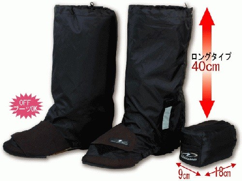 ブーツをすっぽり覆うロングタイプ。コンパクトに収納でき携帯に大変便利!
