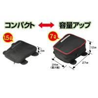 普段は邪魔にならないスリムな大きさですが、いざというとき容量アップして使える頼りになるエコバッグです。タンクバッグにもシートバッグにもなる携帯用バッグ。