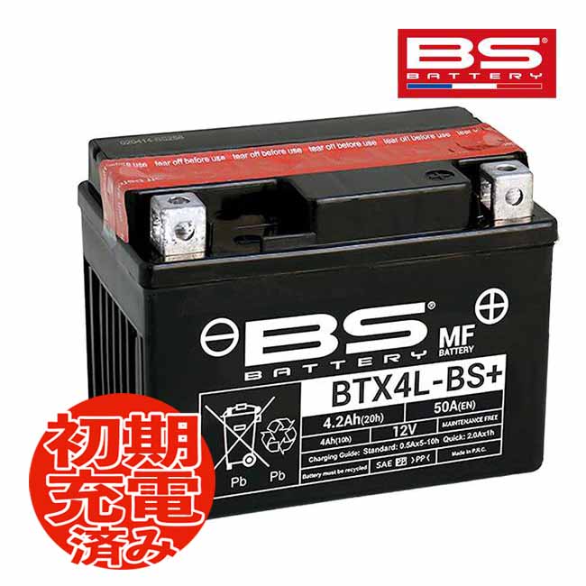フル充電 DIO(ディオ) AF18用 BSバッテリー BTX4L-BS+ (YT4L-BS YTX4L-BS FT4L-BS BT4L-BS)互換 液入り充電済 MF バイクバッテリー