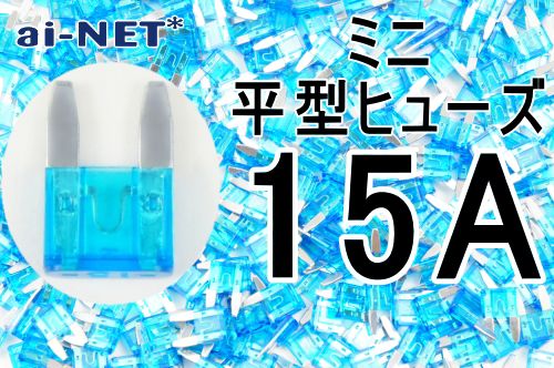 ミニ平型ヒューズ 15A ブルー ミニブレードヒューズ 15アンペア aiNET製