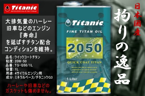 ハーレー ハーレーダビッドソンに最適 オイル Titanic(チタニック) クイックコート 20W50 20W-50 TG-Q50 1L オイル