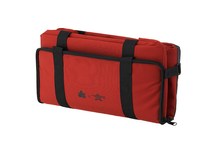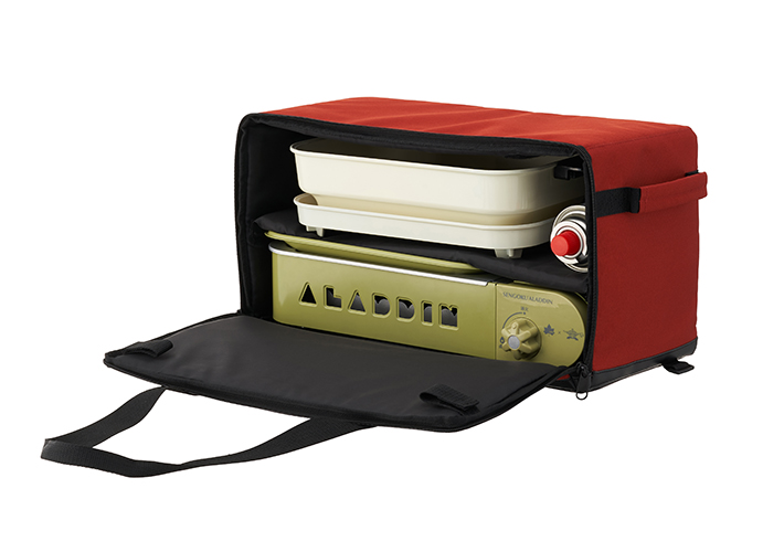 「Sengoku Aladdin ヒバリン」に対応しており、ヒバリンとガスボンベがぴったり収納できるサイズ感。表地には難燃性生地を採用しているうえ、ケース全面にフォームが入っているので、外部からの衝撃を緩和し、キャンプなどの野外での使用に最適です。使用時以外は、折り畳んで、ベルクロテープで固定できるので、省スペースで収納できます。また、保管時には、ヒバリン本体を汚れやホコリから守ります。