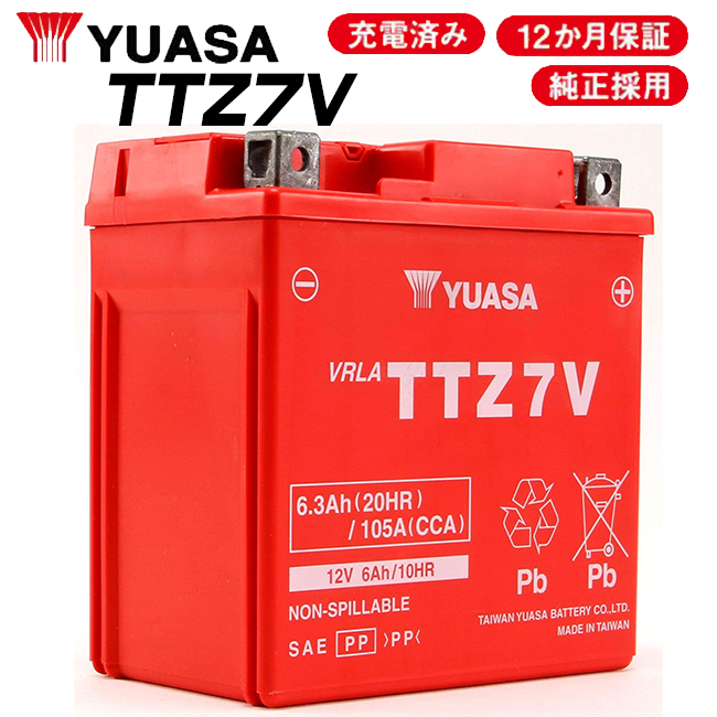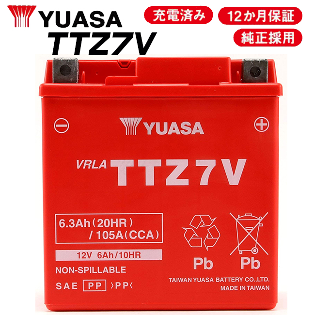 セール特価 2年保証 YUASAバッテリー TTZ7V 充電済 YTZ7V FTZ7V互換 高性能バッテリー充電器使用 台湾ユアサ