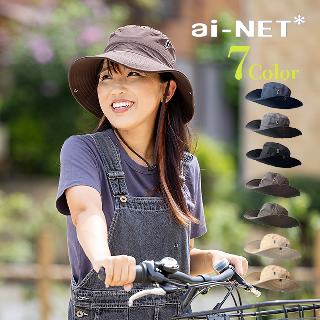 在庫有 撥水処理済み ハット型ヘルメット UPF50+ UVカット ブラウン 7色展開 茶 男女兼用 おしゃれ 帽子型 ヘルメット フリーサイズ 通気 あご紐付 防災 自転車