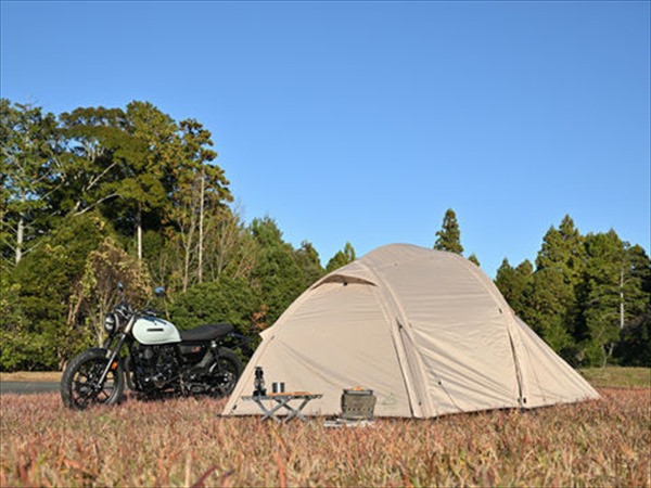 前室はチェアやテーブルを置いても余裕の広さで、インナーテントもバッグなどのギアを置いても