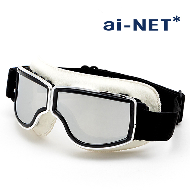 在庫有 送料無料 ヘルメットゴーグル オーバーグラスゴーグル ホワイト/ミラー 紫外線カット 飛散防護 保護メガネ バイクゴーグル