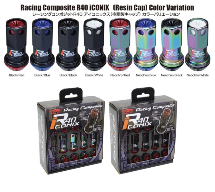 協永産業 レーシングコンポジットR40アイコニックス ロック ナットセット 20個 M12xP1.5 樹脂キャップ ブラック/ブラック RIF-11KK KYO-EI Kics