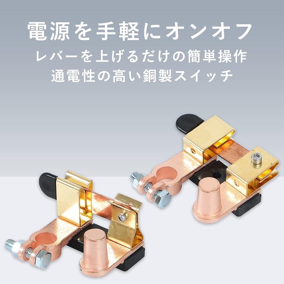 レバーを上げるだけで電流を止めることができ、車やボートなどのバッテリーにお使い頂けます。