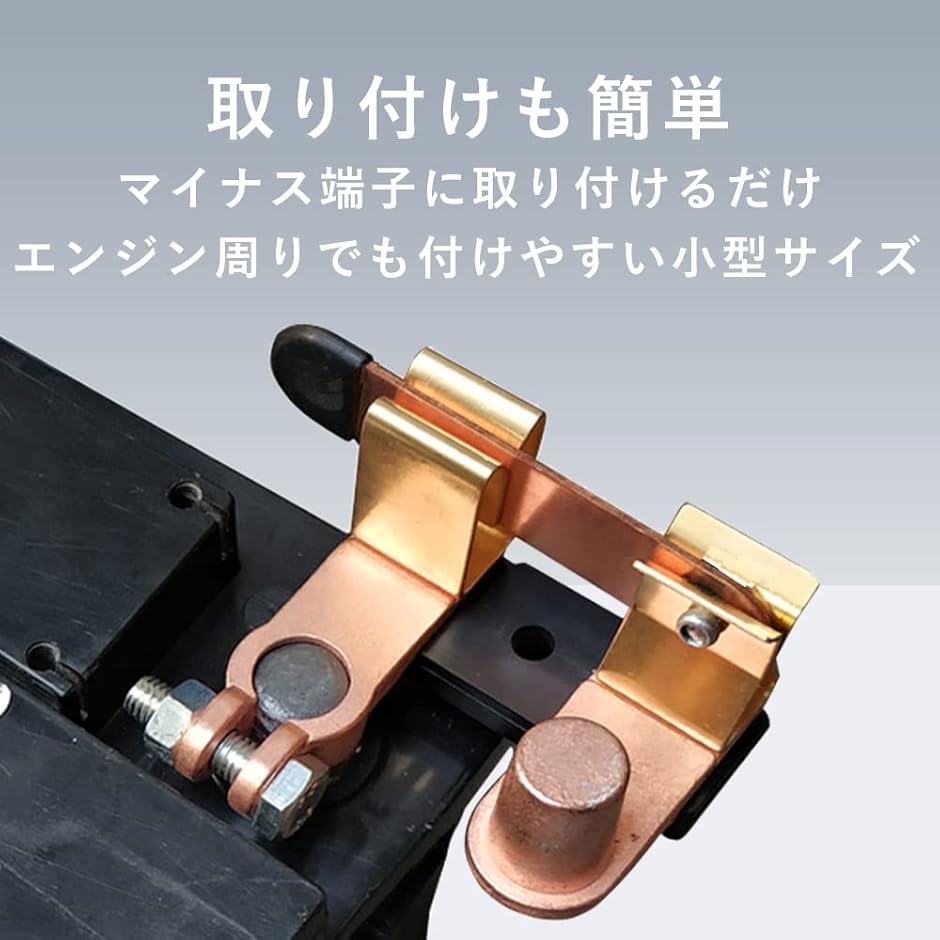 「取り付けも簡単」バッテリーのマイナス端子に取り付けるだけで簡単に使用できます。