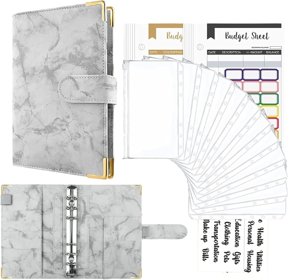 セット内容:ファスナー付きPVC素材のファイル:12枚、予算管理用紙:12枚、英字ステッカー:2枚、カラーシール:1枚の大容量予算バインダー